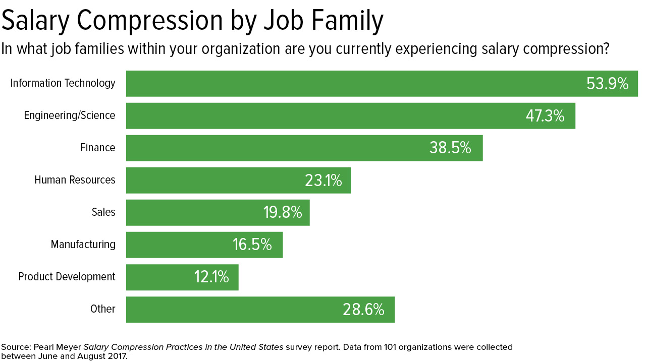 Preventing pay compression between tenured employees and new hires and between managers and their direct reports can keep experienced employees motivated and productive—and less likely to leave, according to findings from a recent report by pay consultancy Pearl Meyer.