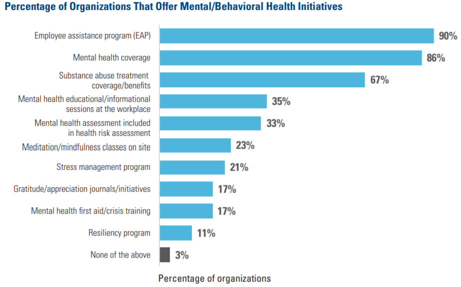 Most organizations (68 percent) planned to increase their emphasis on mental health offerings over the next two years, the IFEBP survey showed.