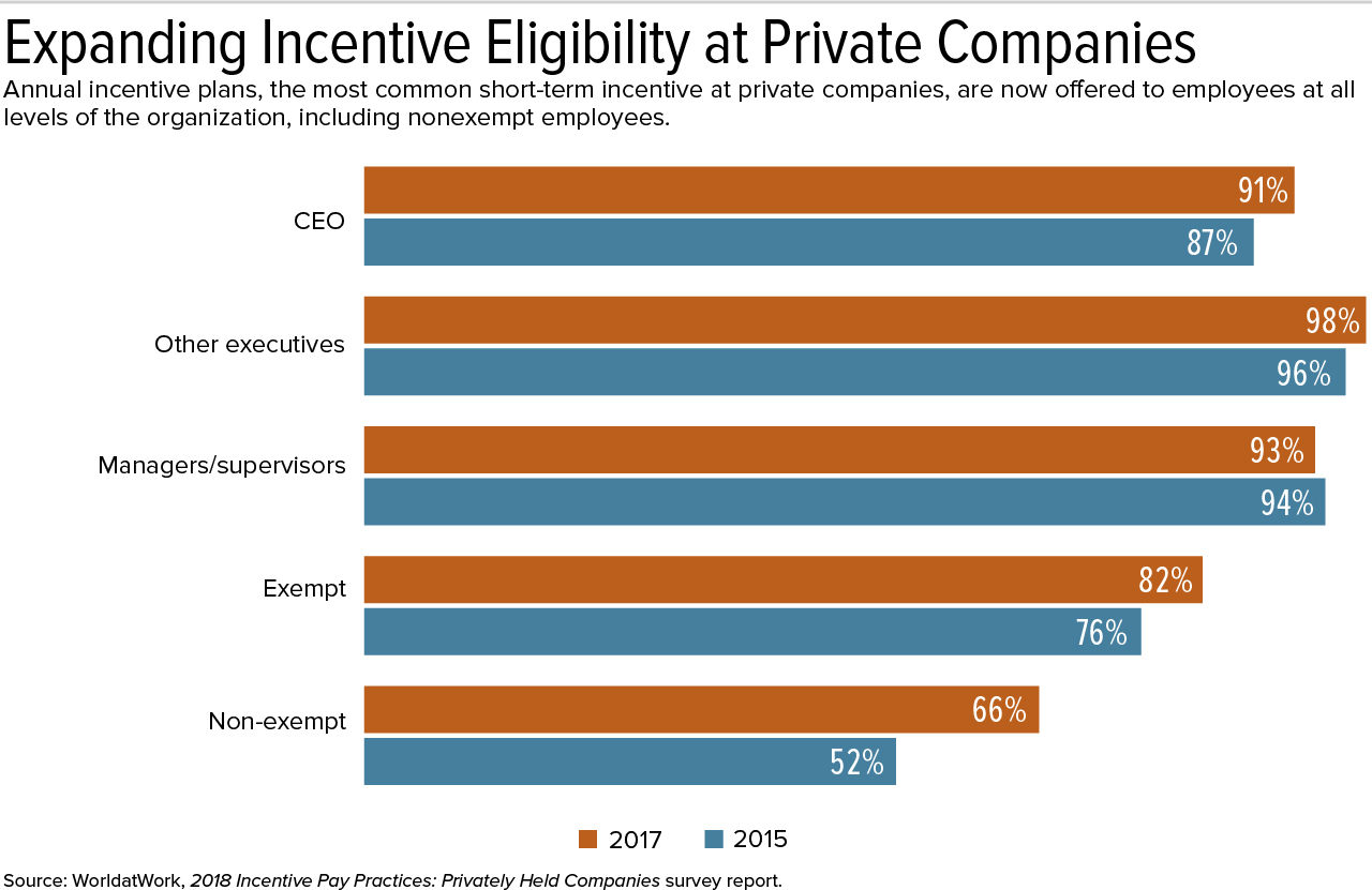 Source: WorldatWork, 2018 Incentive Pay Practices: Privately Held Companies survey report. | |