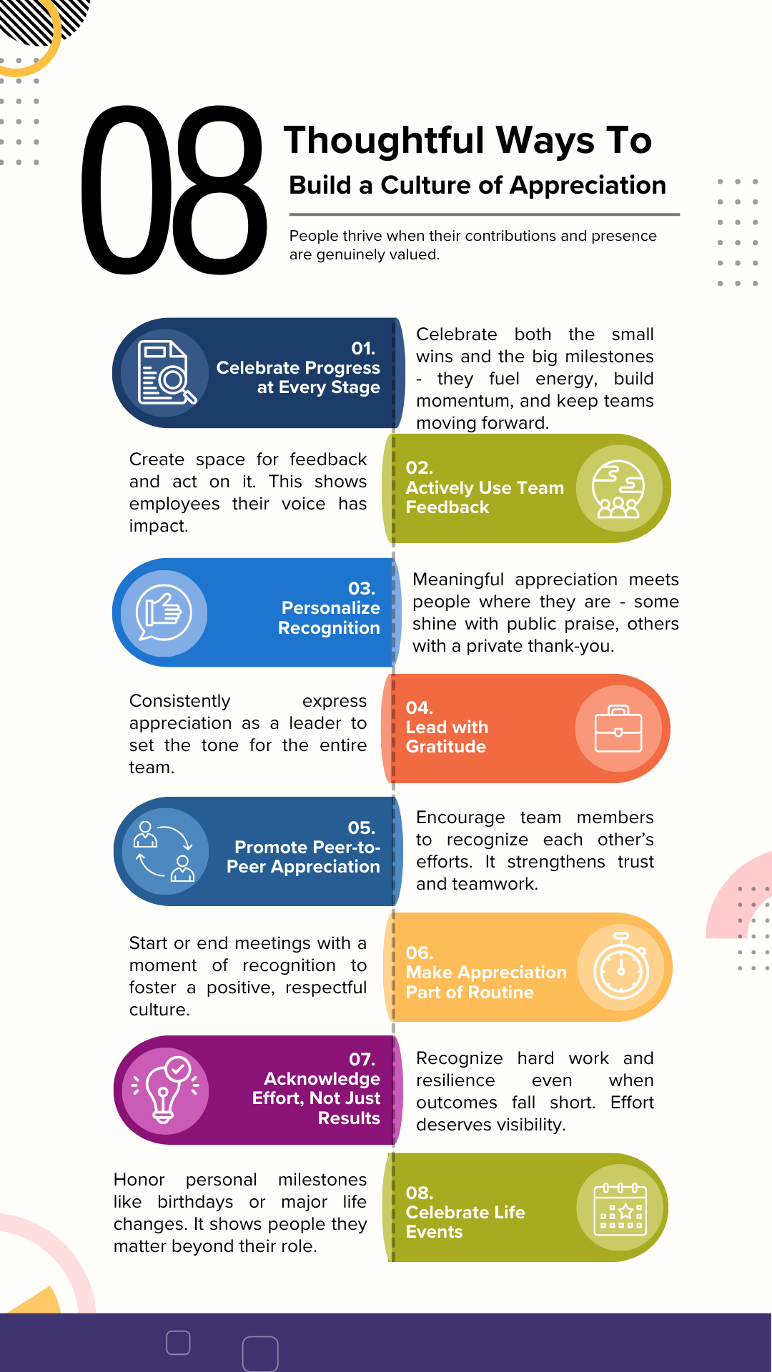 We recently put together an infographic on "8 Thoughtful Ways to Build a Culture of Appreciation," it’s not just a checklist, it’s a mindset shift.
