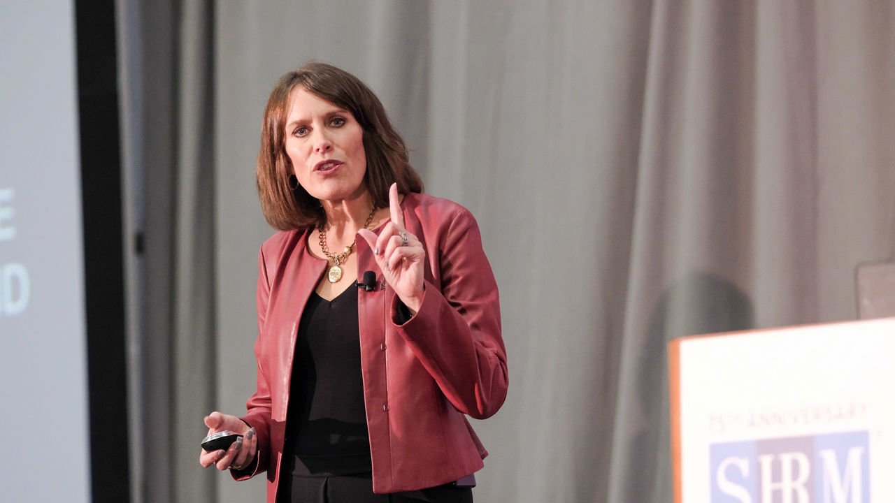 Linkage CEO Jennifer McCollum speaks Oct. 31 at the SHRM INCLUSION 2023 conference in Savannah, Ga.