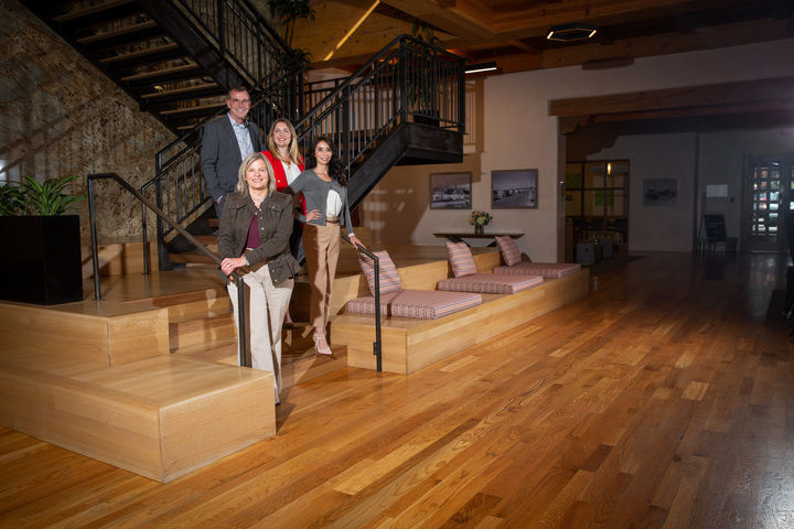 Laurie Monfiletto, front, with members of her HR leadership team, from left, C.J. Bacino, Megan Delano and Leah Sanchez.