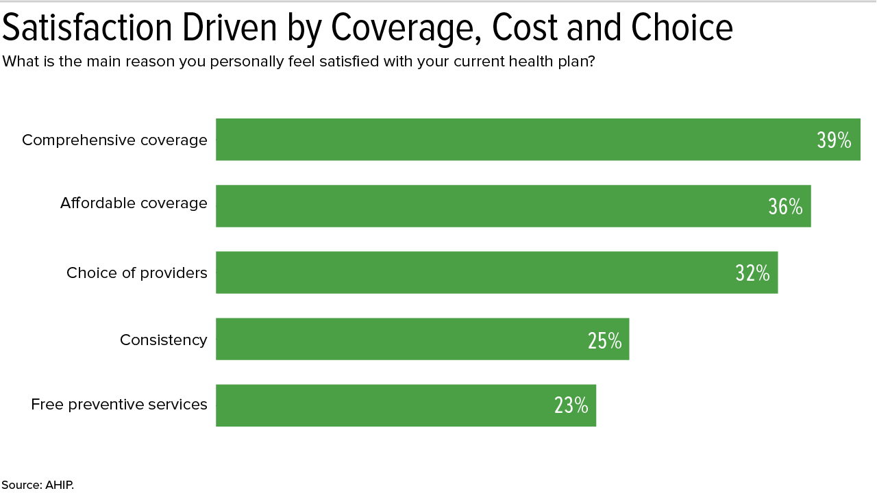 Satisfaction Driven by Coverage, Cost and Choice