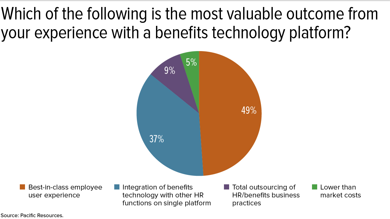 - The most valuable outcomes employers have found in their experience with benefits administration platforms are best-in-class employee user experience (49 percent) and the ability to integrate benefits technology with HR functions (37 percent).