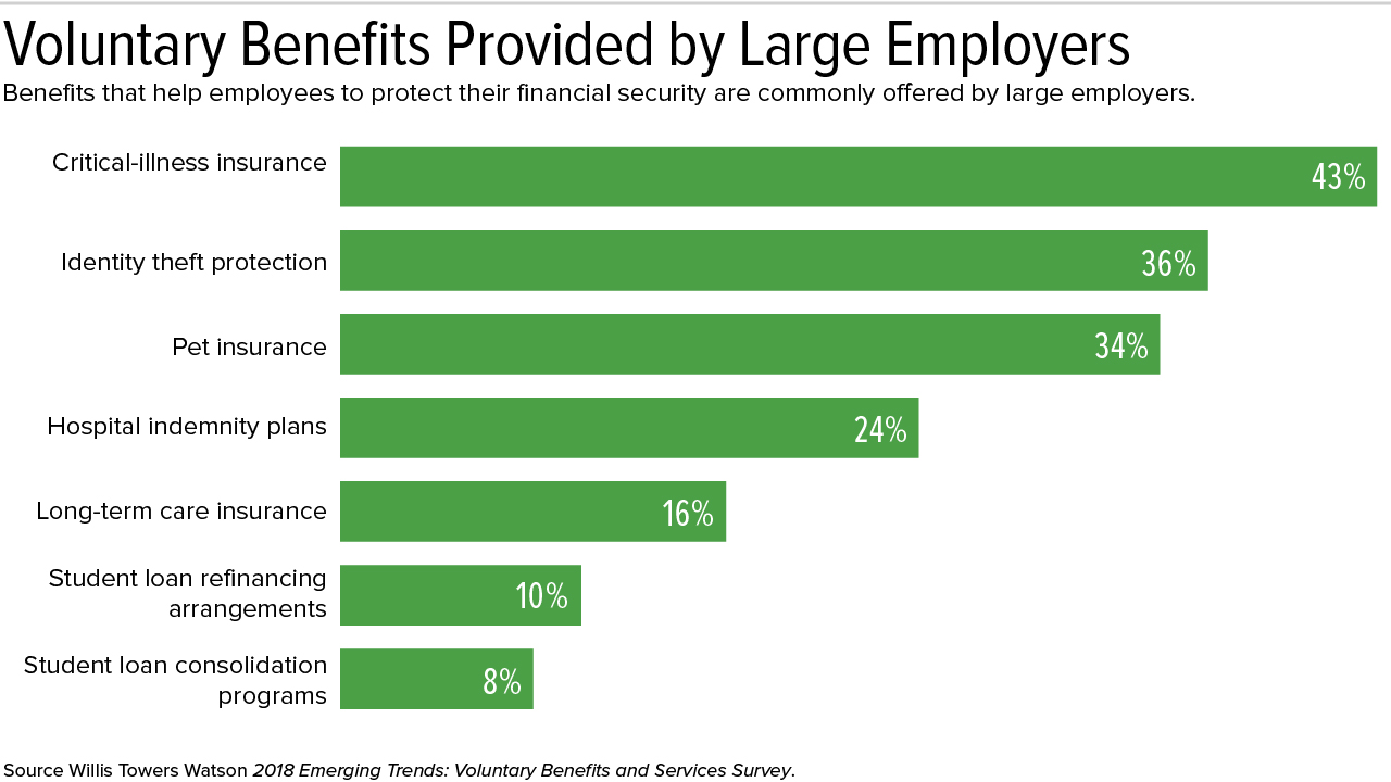 Newly released findings from Willis Towers Watson's 2018 Emerging Trends: Voluntary Benefits and Services Survey of large employers show that: